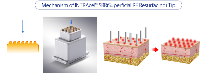 Η στοχευμένη εκπομπή ραδιοσυχνότητας στο δερματικό ιστό από το INTRAcel Pro Fractional RF thermolysis (Thermal damage by sengmented RF Emission) επιλεκτικά εκφυλίζει τις ίνες κολλαγόνου. Προκαλείται έτσι άμεση συρρίκνωση των ινών κολλαγόνου με αποτέλεσμα να αρχίζει η παραγωγή νέου κολλαγόνου και ελαστίνης λόγω της βιοδιέγερσης των ινοβλαστών.